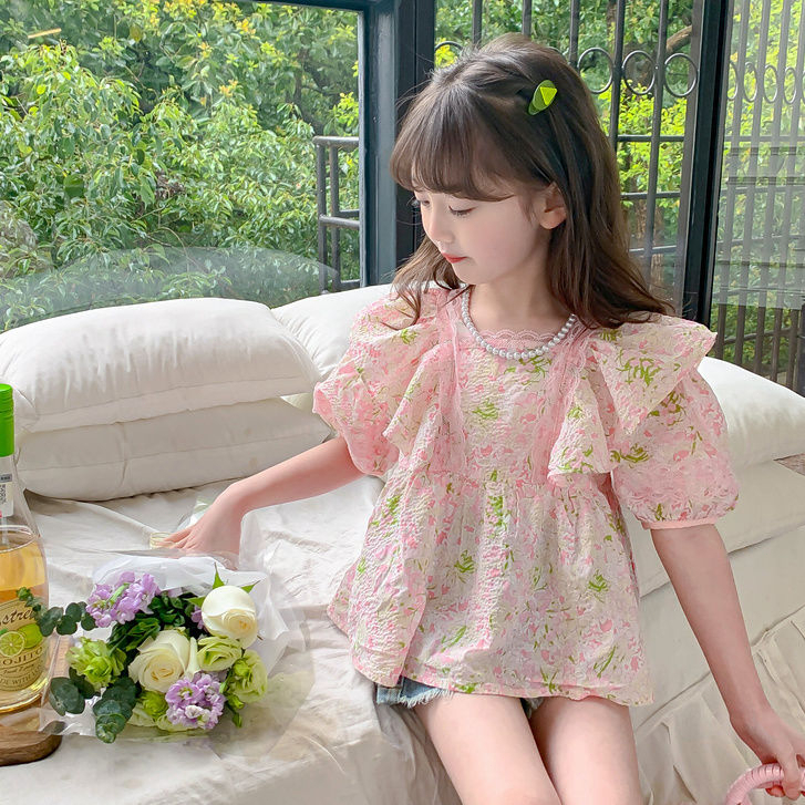 Baju Blouse Anak Perempuan Korea Lengan Pendek Bunga Santai Cute Nyaman