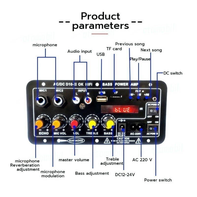 2000W Amplifier Bluetooth Super Bass 12V/24V/220V Modul Speaker Bluetooth Power Amplifier