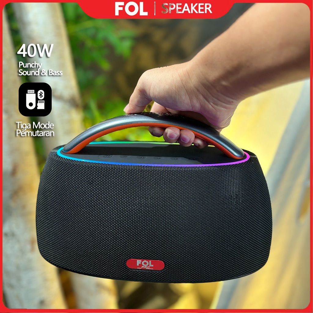 FOL Speaker Bluetooth 40W Partybox Portabel Super Bass with RGB Light Speaker aktif TWS Stereo besar