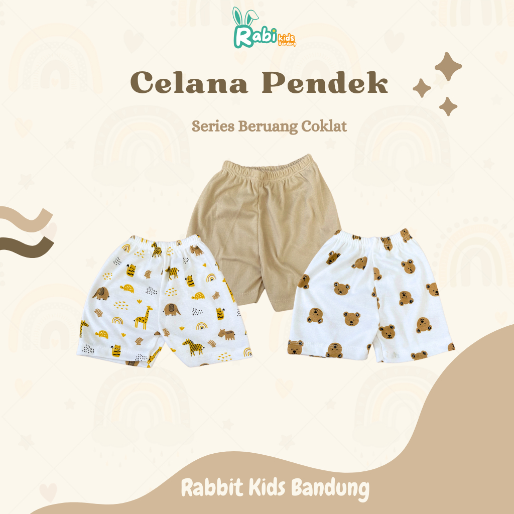 Baju Lengan Pendek + Celana Pendek Series Cokelat Beruang Baju Bayi Newborn 03 Bln Unisex Bahan Katun Halus Lembut