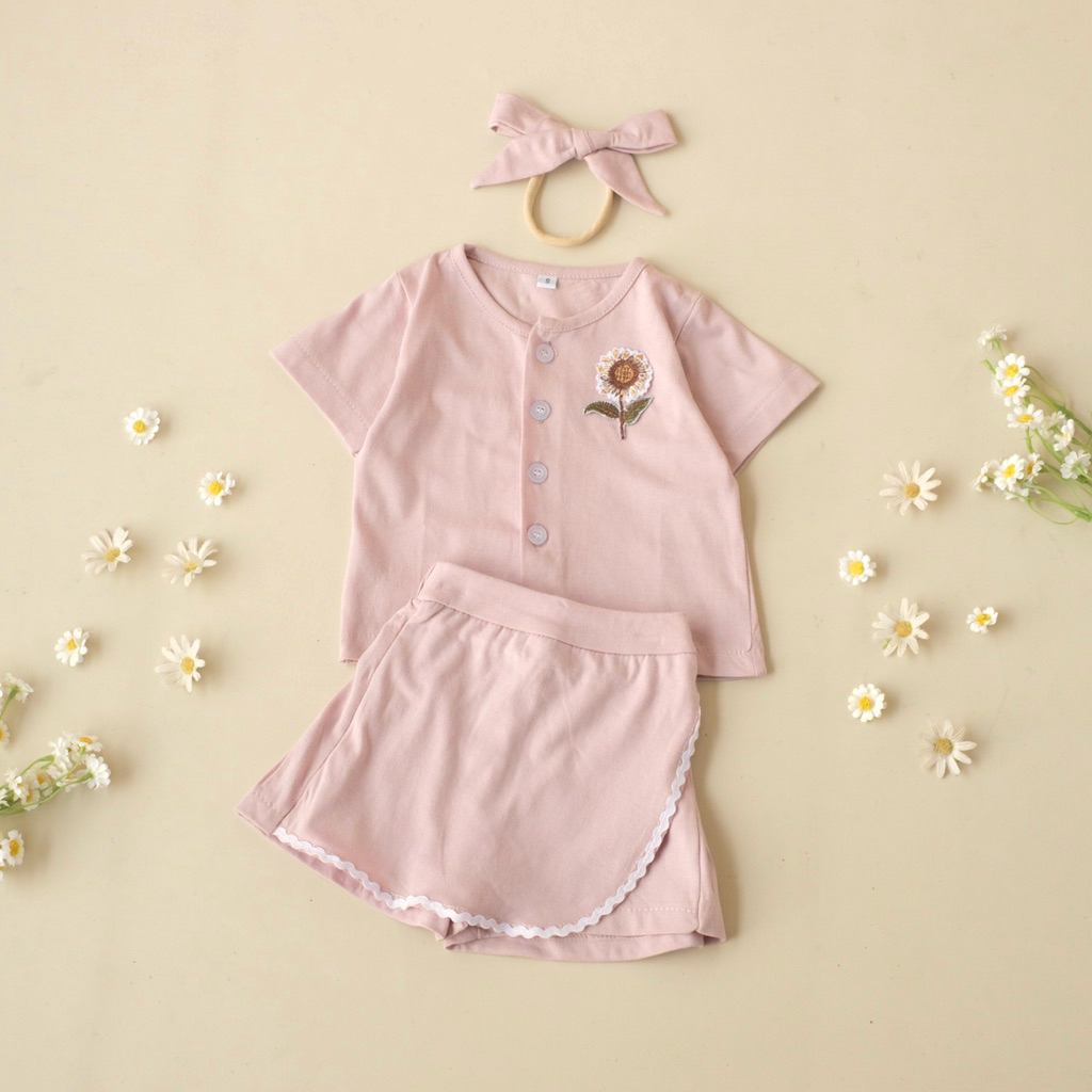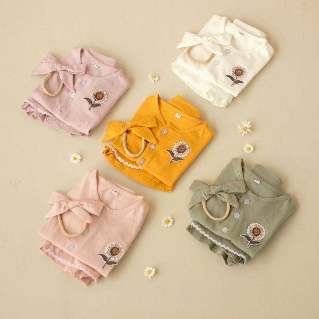 Setelan Bayi Milea Bahan Katun Bonus Headband 018 Bulan