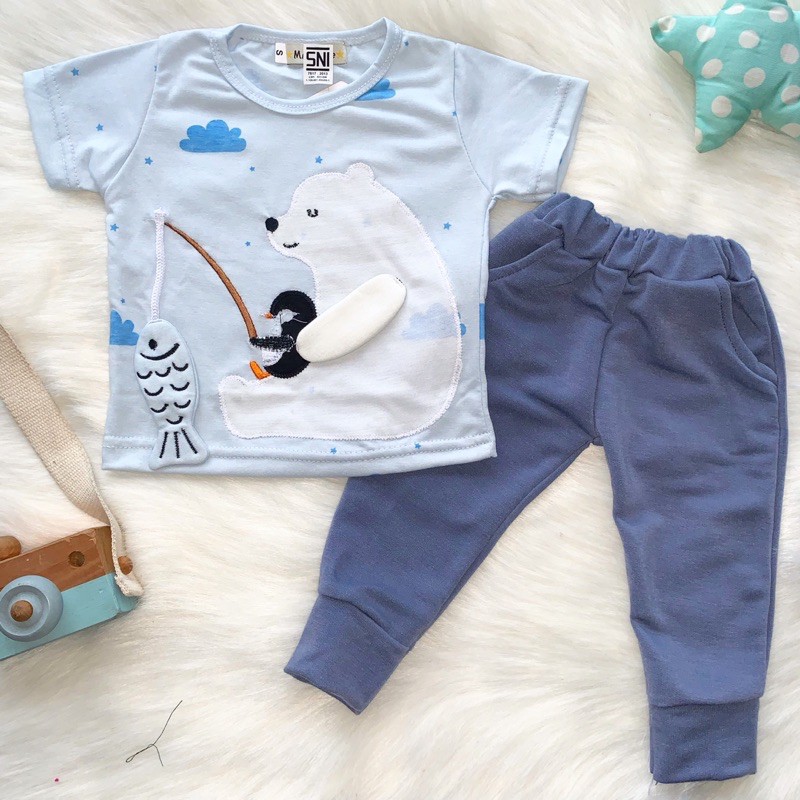 DP 0 setelan jogger anak laki laki 13 tahun polar bear blue dino jogger set kaos lengan pendek jogger panjang balita laki laki