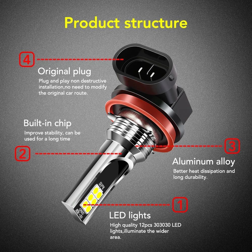 1Pcs Lampu LED Putih H11 H4 Two Color 24SMD untuk Headlight / Fog lamp Mobil Lampu Depan 3030 SMD 12-24V Anti Kabut Untuk Mobil