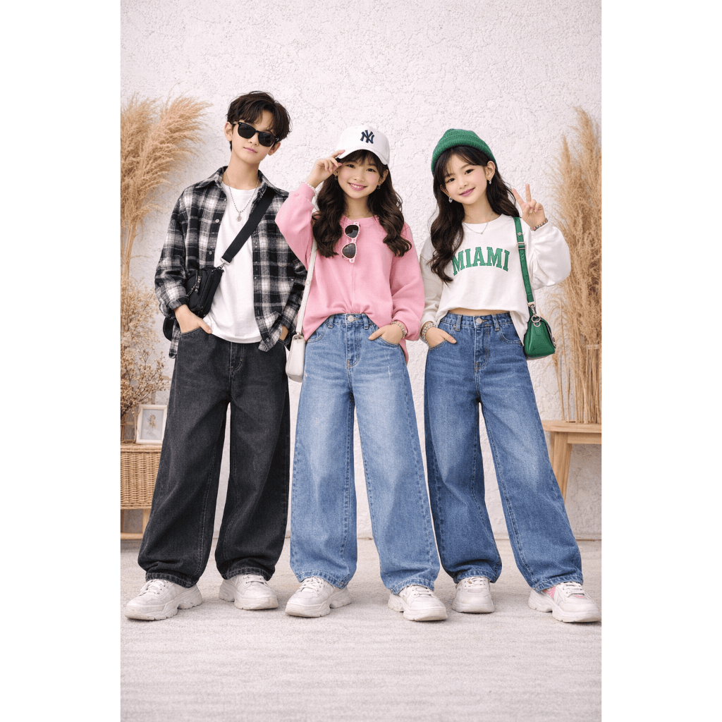 Celana Kulot Jeans Anak Unisex Model Skena Baggy Usia 8 14 Tahun