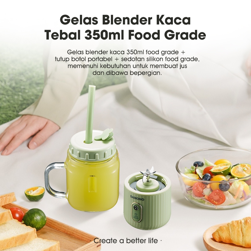 SAMONO Portable Juicer Gelas Kaca 350ml juicer portable blander jus portable belender jus blender buah blender jus buah blender mini portable SW-Y5 Plus