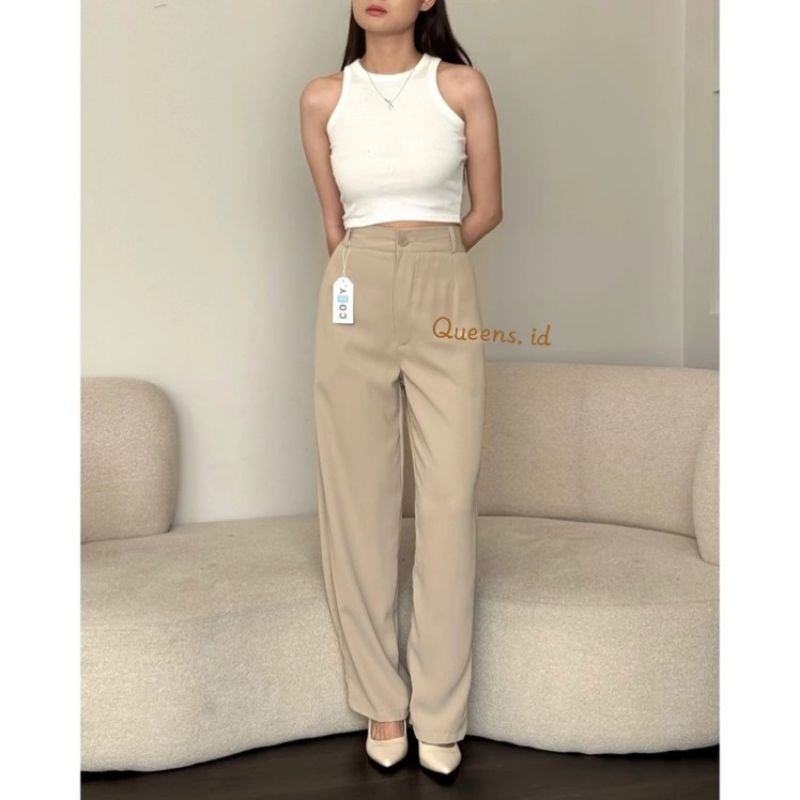 Loose Pants - Celana Highwaist Anti Kusut - Trousers Kantor Formal Casual Long Cullote Terbaru