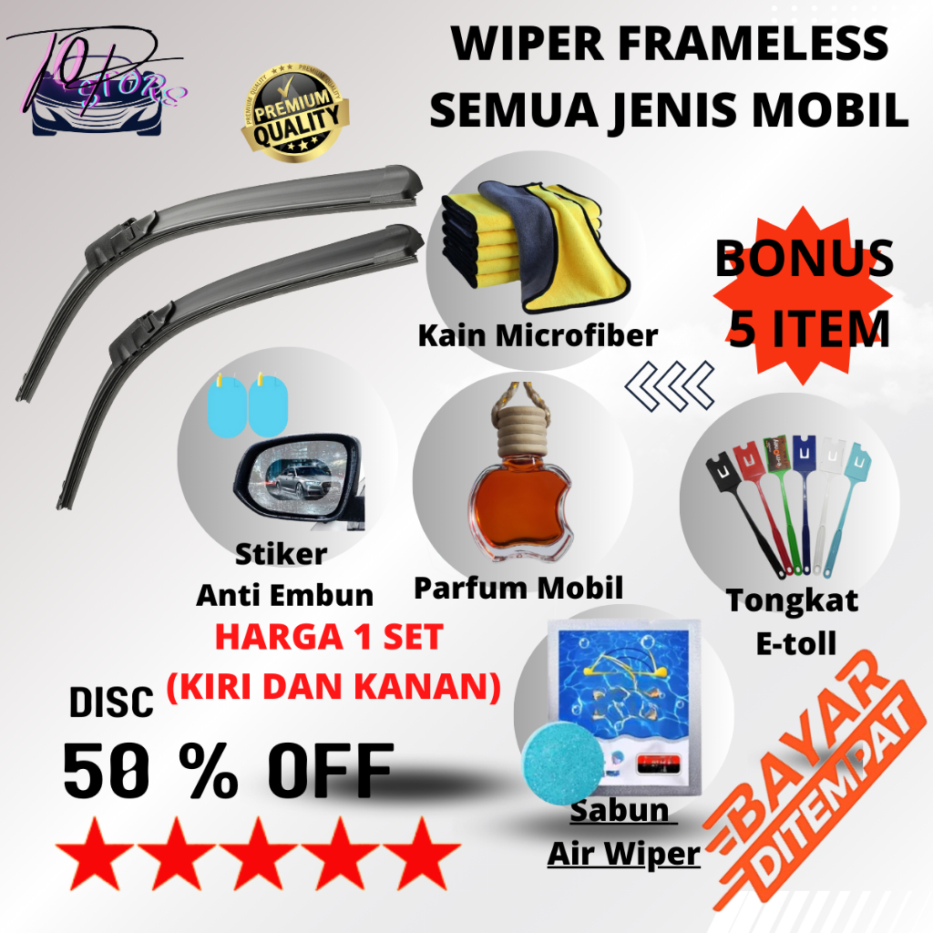 [PAKET HEMAT] Wiper Frameless Mobil untuk Semua Jenis Mobil / Wiper Blade Single Karet 1 Set (Kiri dan Kanan) kaca kain kendaraan microfiber Besi Motorcycle Windshield