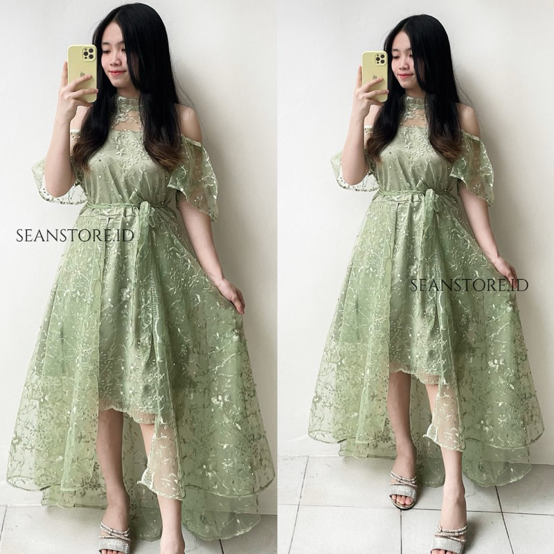 Glowy Dress Sabrina Wanita Elegant Anggun Dress Bridesmaid Prewedding Pesta kondangan Imlek Dress Gereja Natal Terbaru