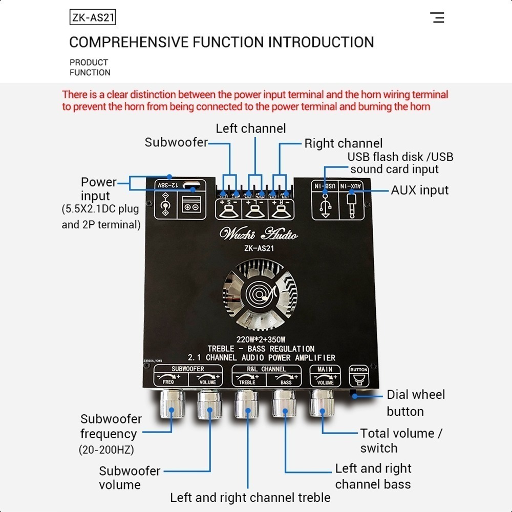BUMIR ZK-AS21 2.1 Audio Amplifier with Bluetooth, 350W+220W2 Lengkap Dengan Case dan Aksesoris