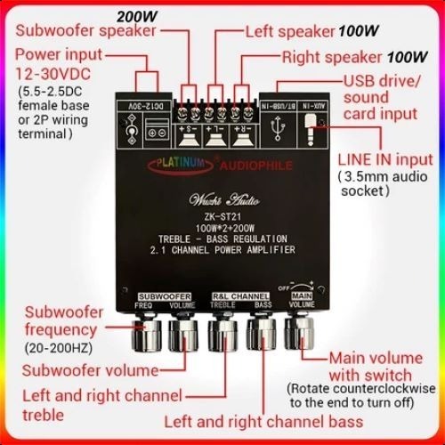 ZK-ST21 TPA3221 Amplifier 2.1 CH Bluetooth Hifi Stereo Class D 100W + 100W + 200W
