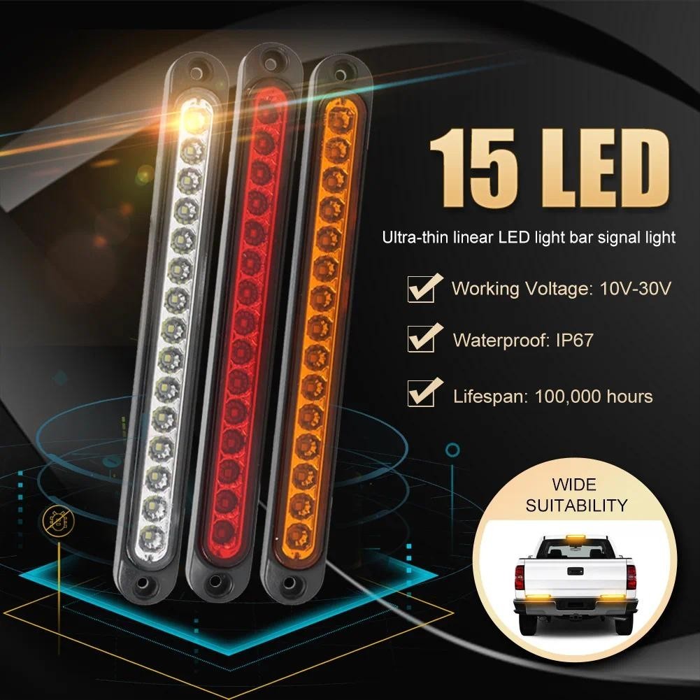 Lampu Belakang Ekor LED Universal 15LED Lampu Bar Strip Lampu Berhenti Tahan Air Lampu Sinyal Belok untuk Pickup Truk Trailer 12V 24V