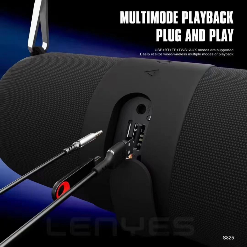 LENYES SPEAKER BLUETOOTH RGB TWS V5.3 40WATT WATERPROOF IPX5 WITH STRAPPING AND DSP CHIP HIFI STEREO S825
