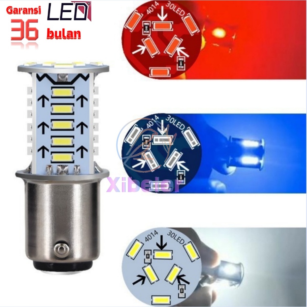 AUTOLUME - Lampu LED S25 1157 Stop Lamp Rem Strobo Senja 30 Mata Super Terang Motor Mobil 12V TERMURAH - Garansi 3 Tahun