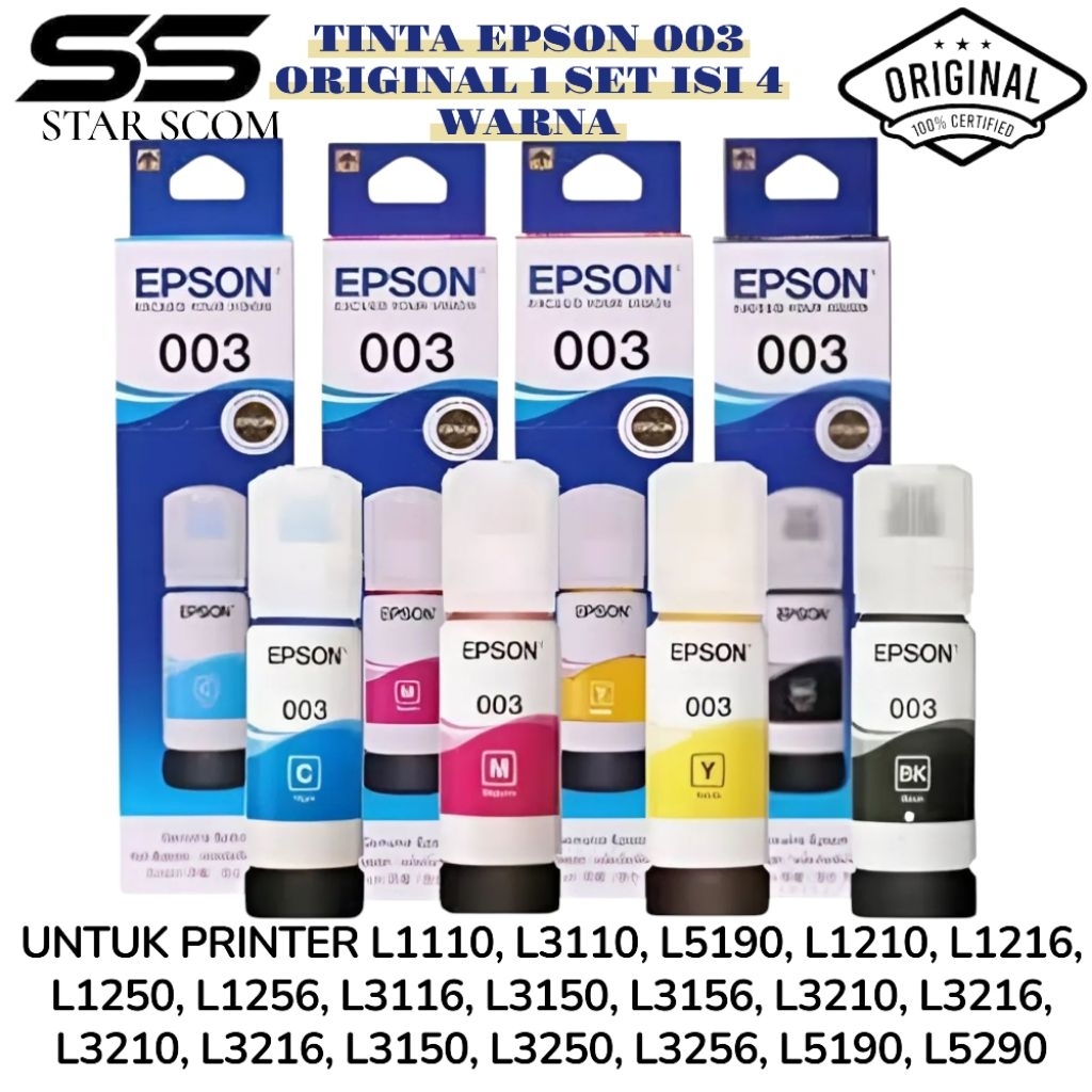 1SET TINTA PRINTER EPSON 003 ORIGINAL L1110 L3110 L5190 L3116 L3150 L3156 L3210 L5190 L5290