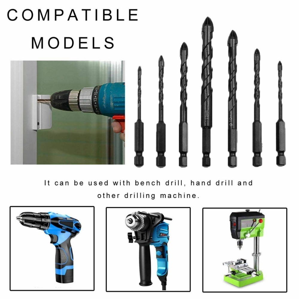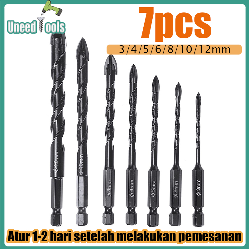 UneedTools Mata Bor Cross Hex 7pcs 3/4/5/6/8/10/12mm Mata Bor Hex Bahan Alloy mata bor tombak kaca Untuk Melubangi Kaca Keramik Beton pengeboran