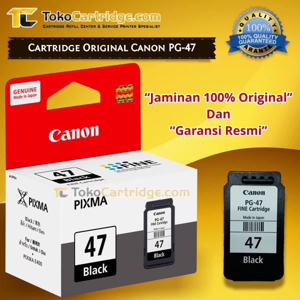 Cartridge Tinta Canon PG47 PG 47 Black ORI Catridge Printer E400 E410 E417 E460 E470 E477 E480 Hitam