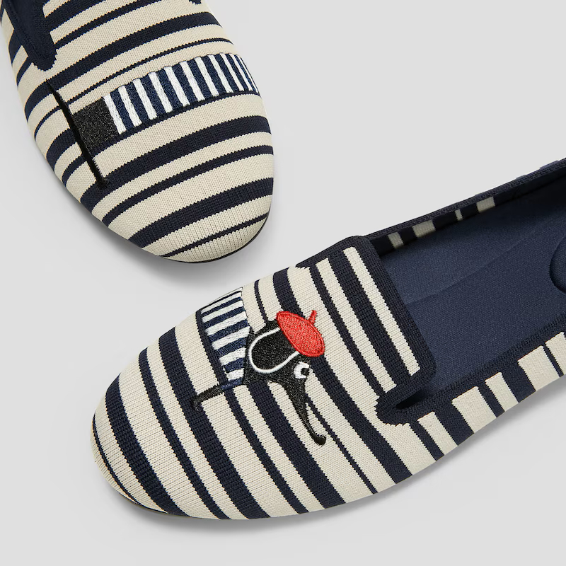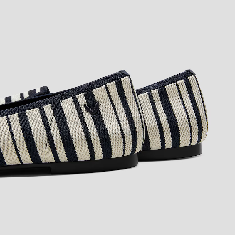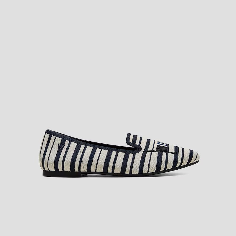 VIVAIA Sepatu Wanita Round-Toe Embroidered Loafer (Audrey) - Navy Ivory Multi Stripe-Dog