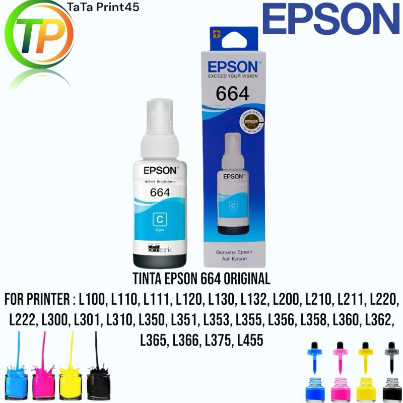 PAKET 1SET TINTA EPSON 664 ORIGINAL PRINTER L110 L120 L210 L220 L300 L310