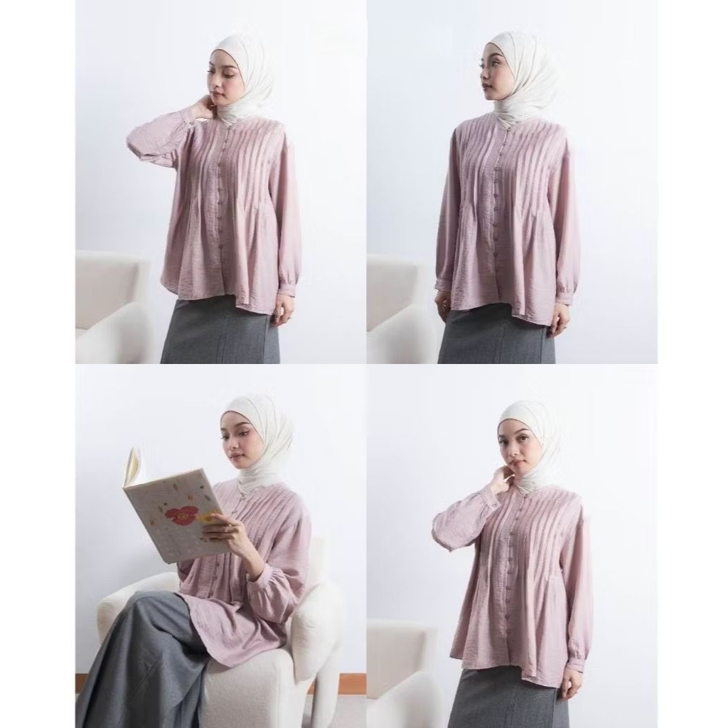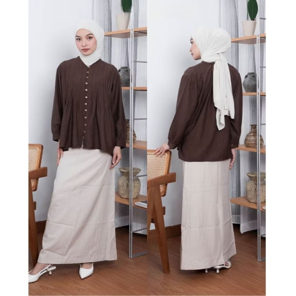 Blouse Rempel Wanita Polo Linen Polos Baju Kemeja Kekinian
