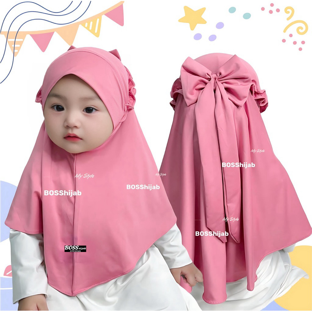 Jilbab Anak Bayi hingga 8 Tahun Model Pita Ricis Jersey Premium