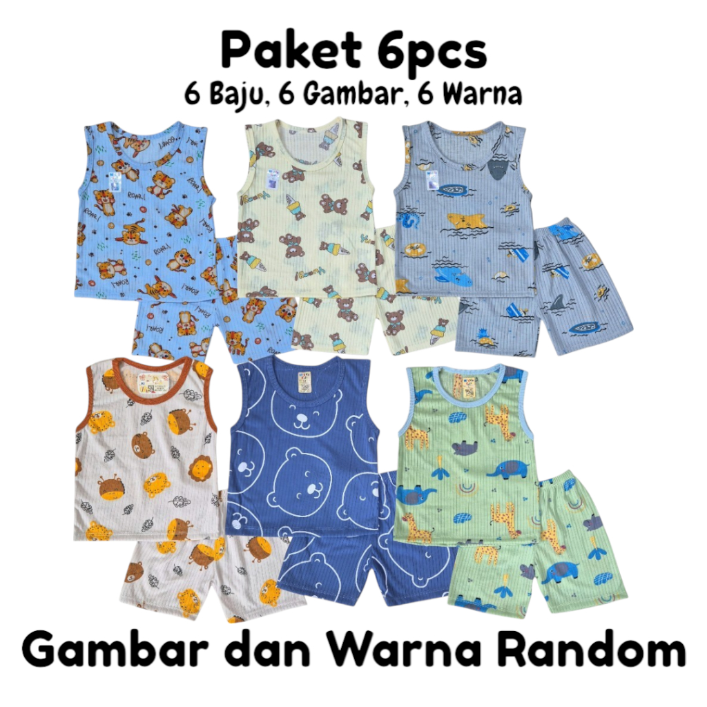 Setelan Singlet Anak Laki Laki Motif Animal 02 Tahun Lekbong Paket 3 Pcs