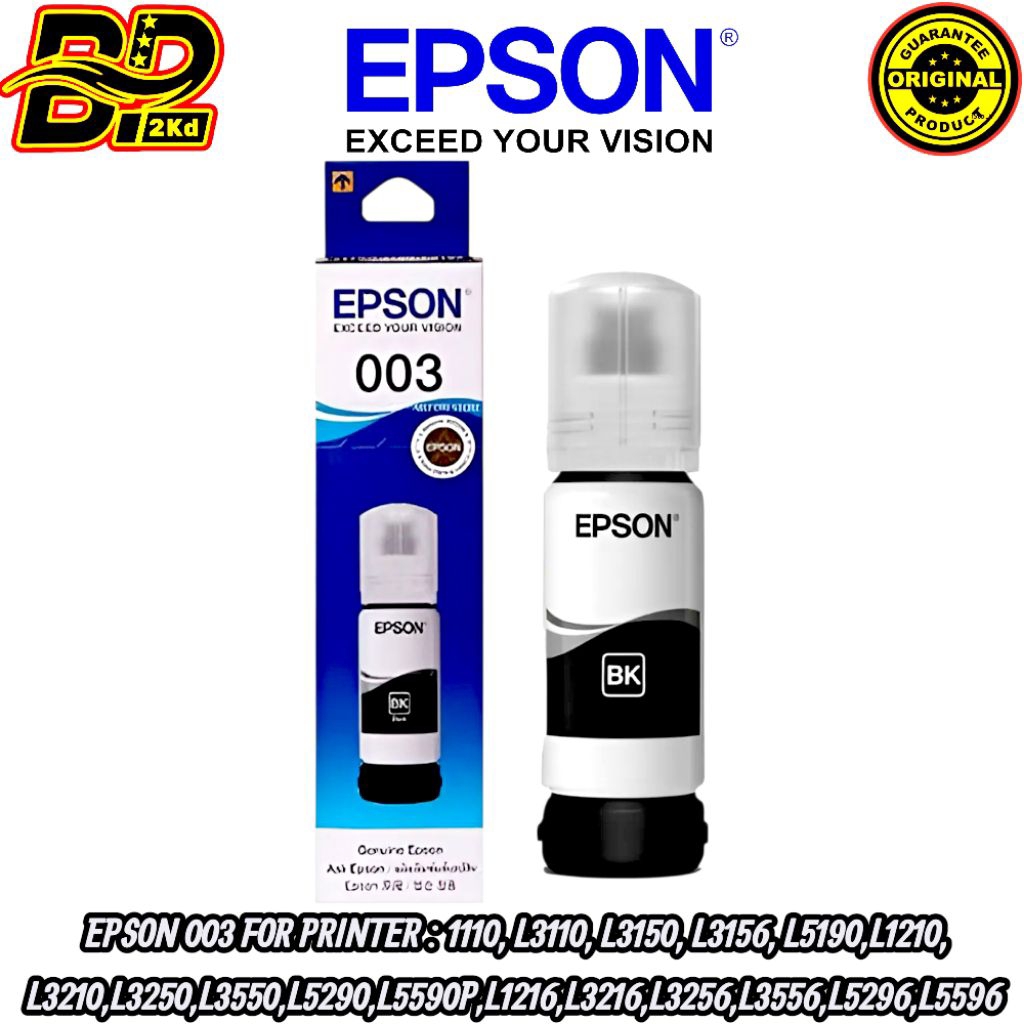 1 PAKET TINTA EPSON 003 ORIGINAL UNTUK TIPE PRINTER = L1110,L1210,L1250,L1256,L3100,L3101,L3110,L3210,L3216,L3116,L3150,L3156,L3250,L3256,L5190,L5290,L5296