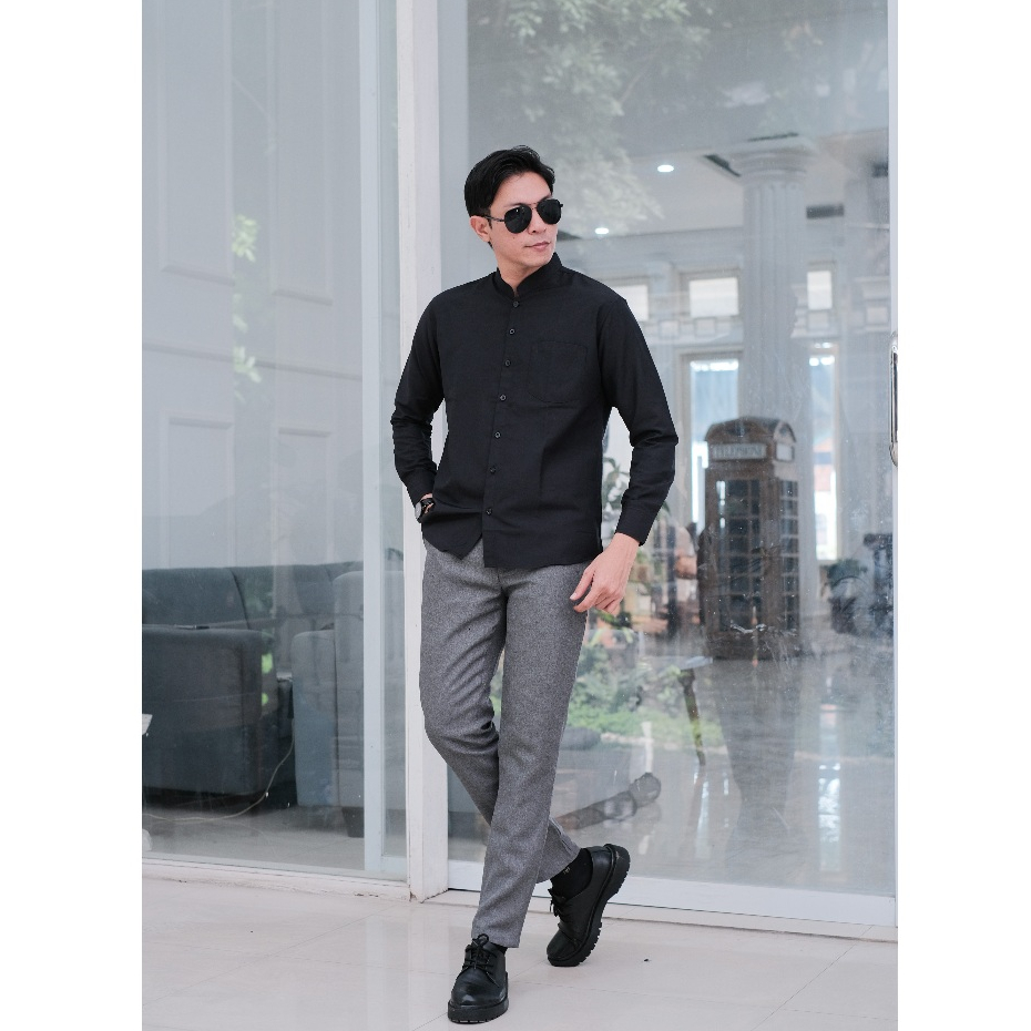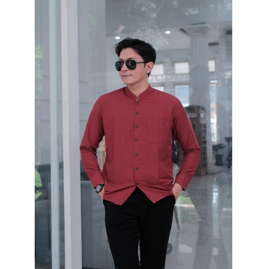 Kemeja Koko Pria Kerah Shanghai Polos Lengan Panjang Slimfit Premium ALJOSA