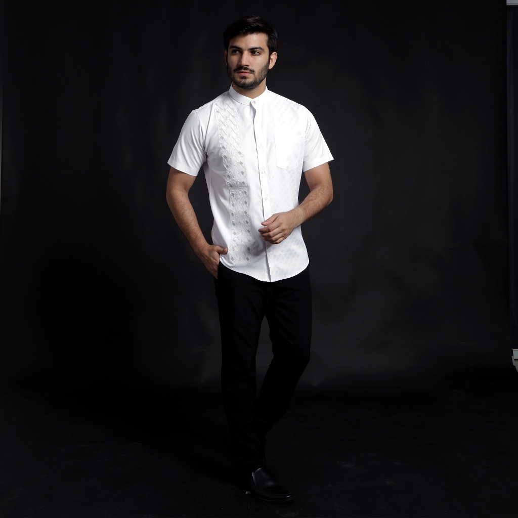 Baju Koko Pria Lengan Pendek Arabesque Embroidery White Design Casella