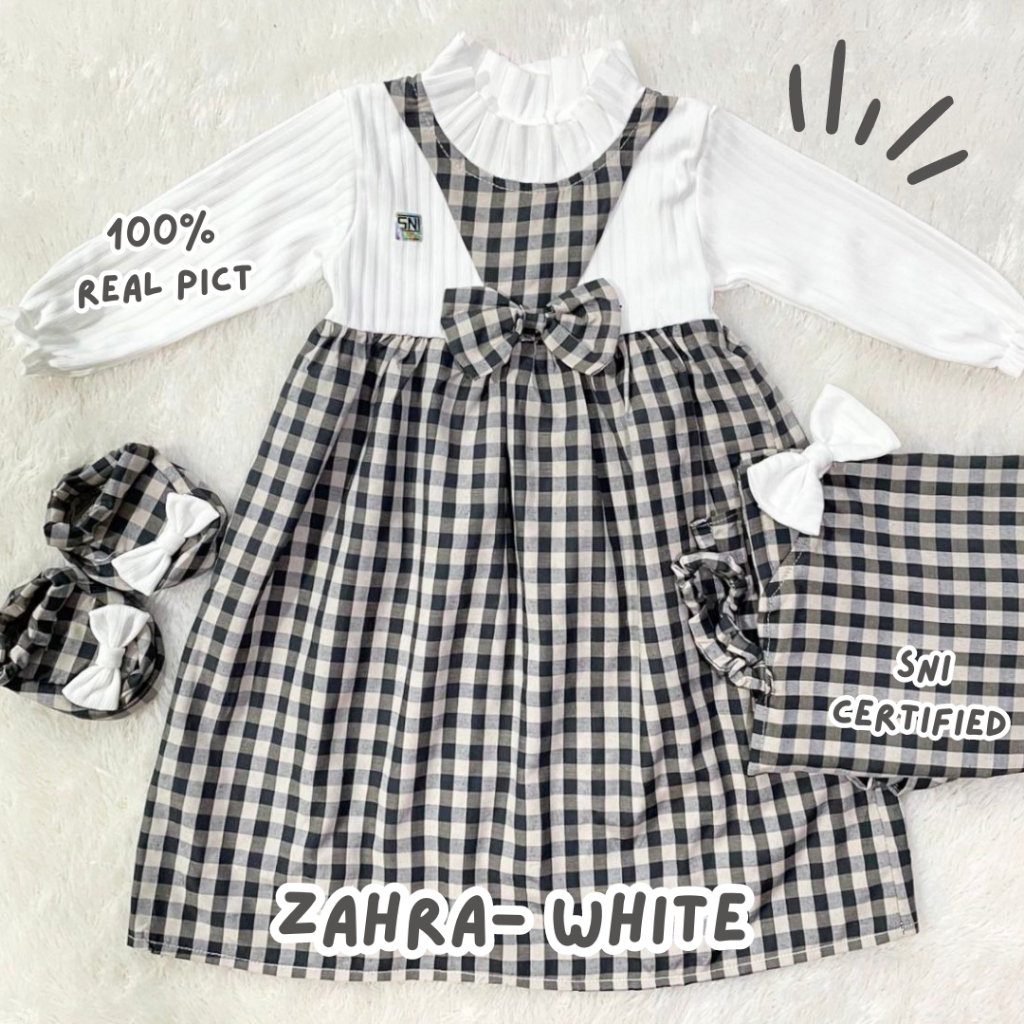 DP 0 gamis anak perempuan 6 12 bulan set motif kotak hijab