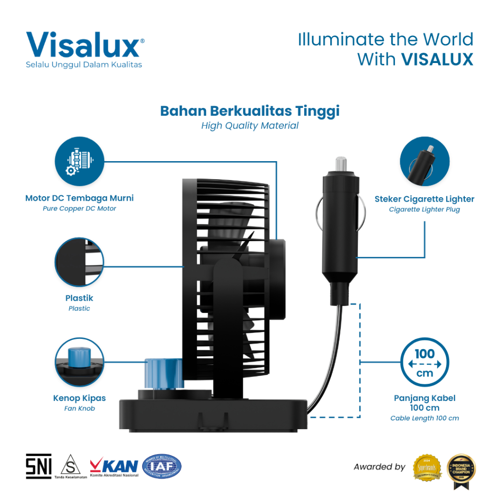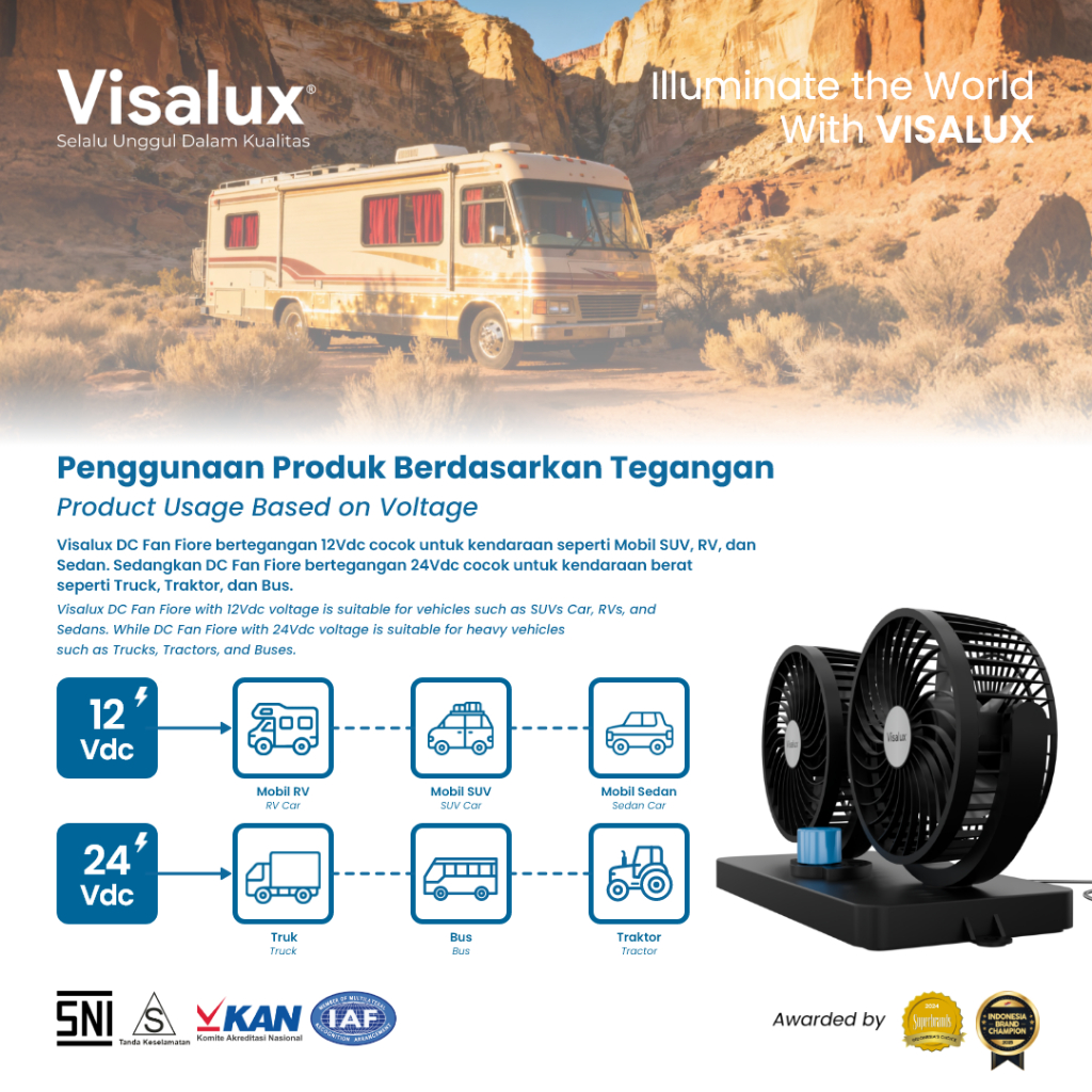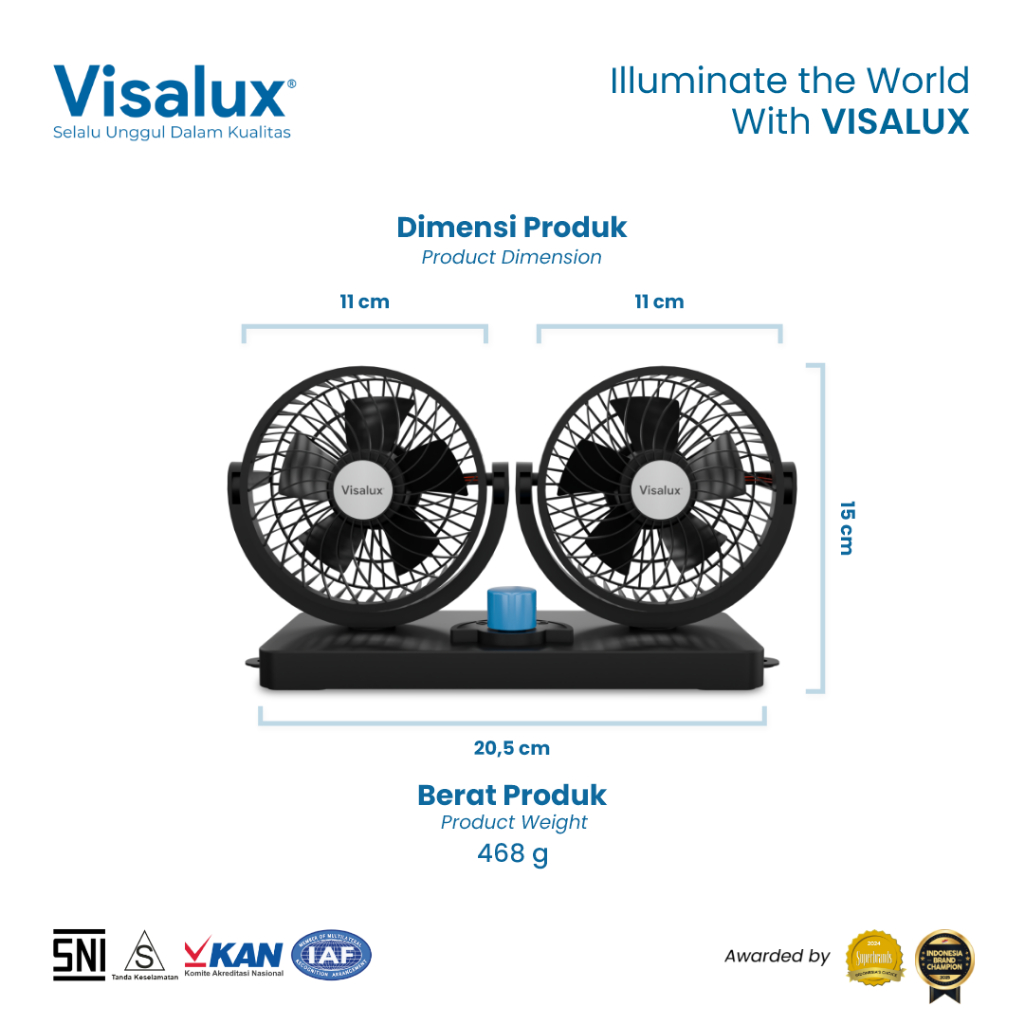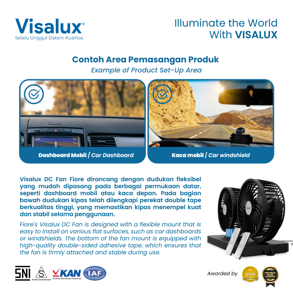 Visalux Fiore Double DC Fan 12W 4 Inch 12Vdc 24Vdc - Kipas Angin Mobil dengan Rotasi 360° (FIORE-FE15)