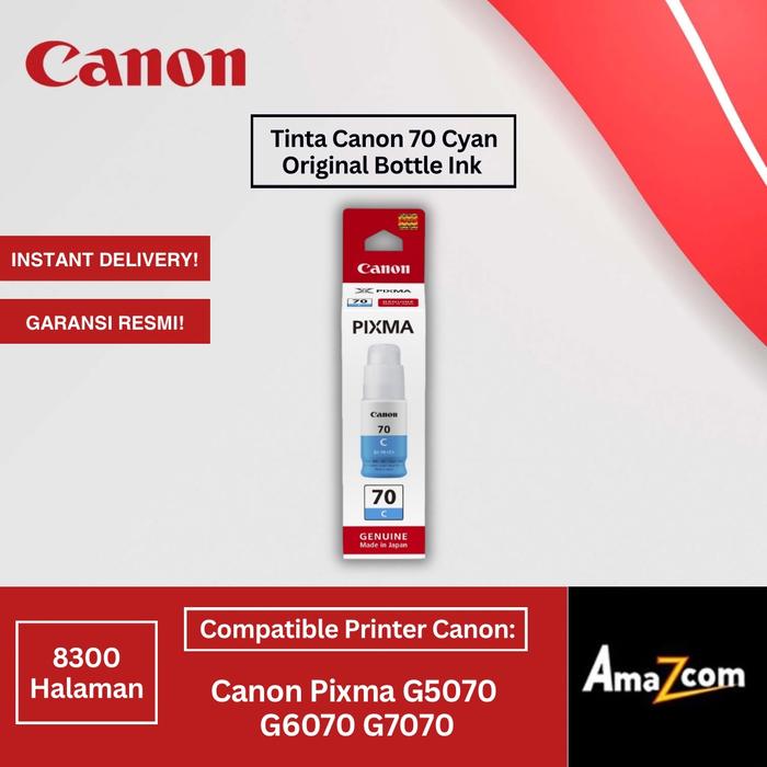 TINTA CANON 70 COLOUR ORIGINAL INK BOTTLE TINTA PRINTER CANON G5070 G6070 G7070 - CYAN