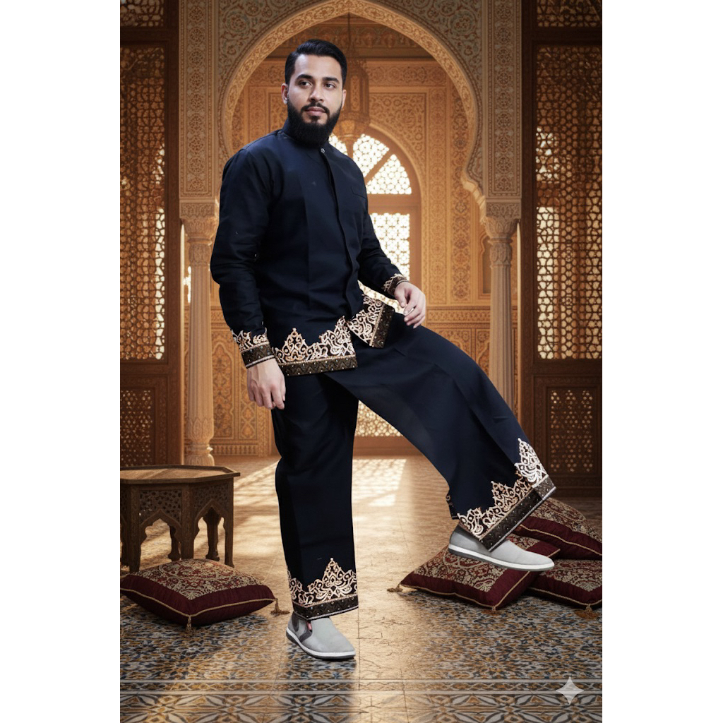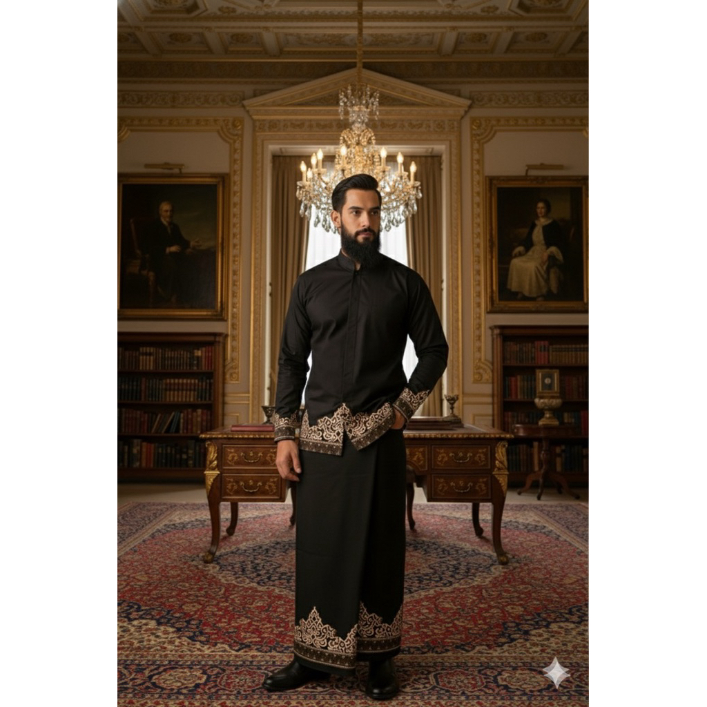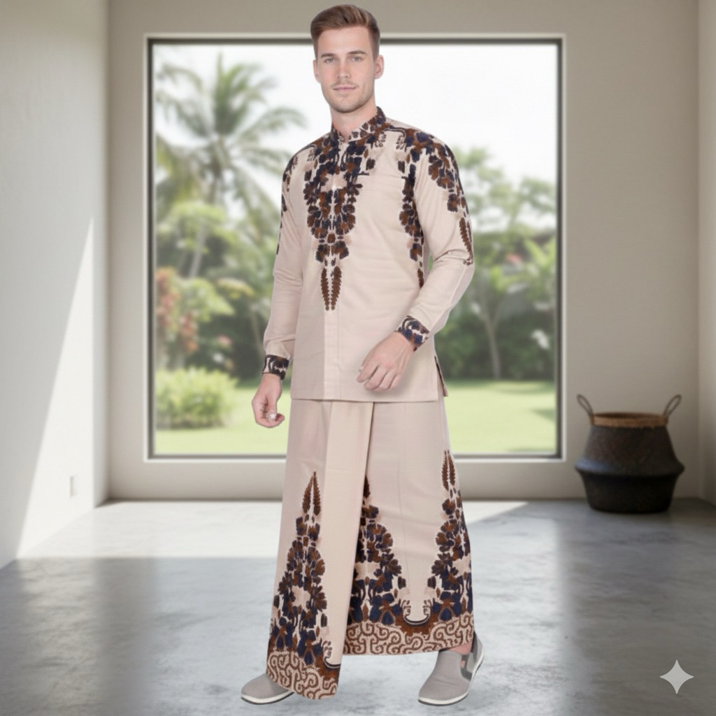 Setelan Baju Koko Batik Slimfit Lengan Panjang + Sarung Motif AKHWAN Pria