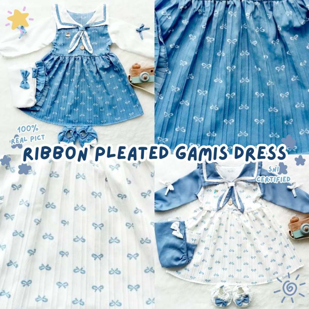 DP 0 Ribbon Pleated GAMIS Dress anak perempuan ALL SIZE 012bulan free HIJAB
