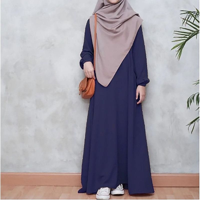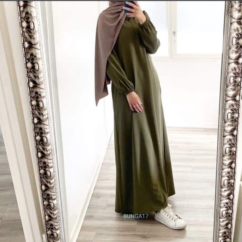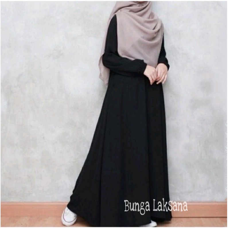 Basic Abaya Hitam Dress Gamis Daily Polos Syar'I Wanita Muslim Lengan Panjang Busui