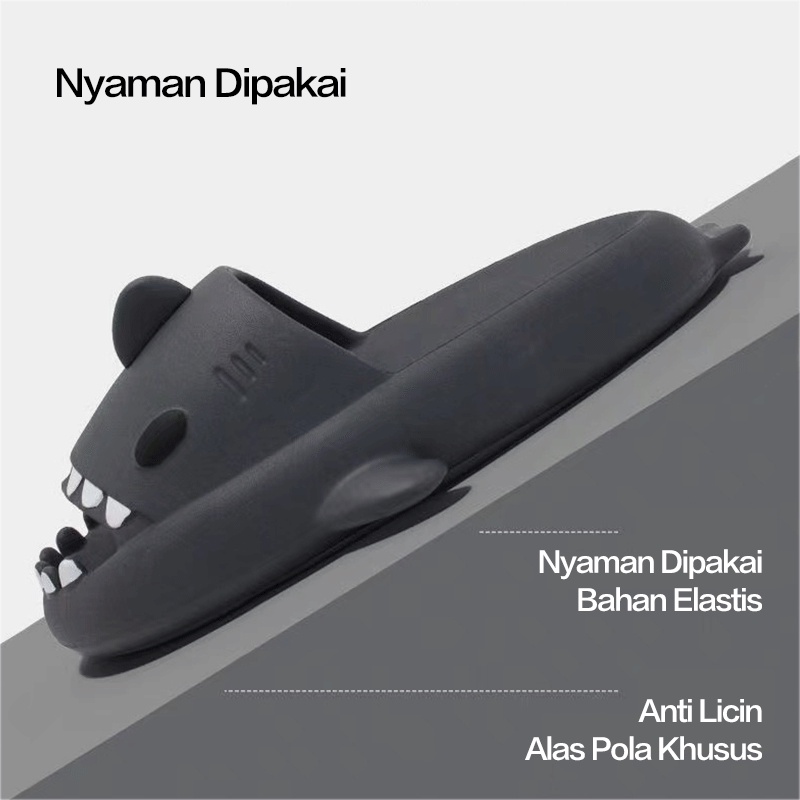 Sandal Jelly Wanita Motif Hiu Anti Slip - Sandal Rumah Slop Karet Shark Lucu Terbaru Hsn601