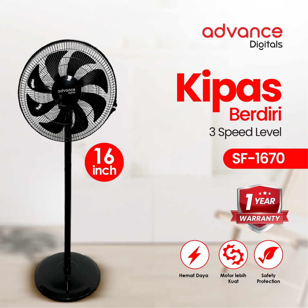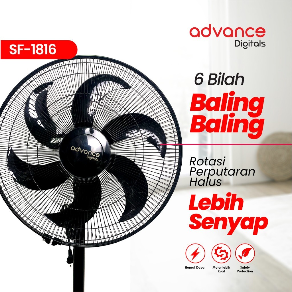 Kipas Angin Berdiri Advance SF16A/18"SF-1816 16inch 40Watt 3 Speed Hembusan Angin Kencang Garansi Resmi 1 Tahun - Kipas Angin Tornado