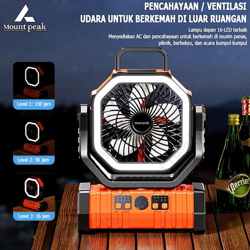 Mount peak Kipas angin portabel 20000mAh, pengaturan angin 3 tingkat, layar LED, portabel, dapat dilipat, luar ruangan