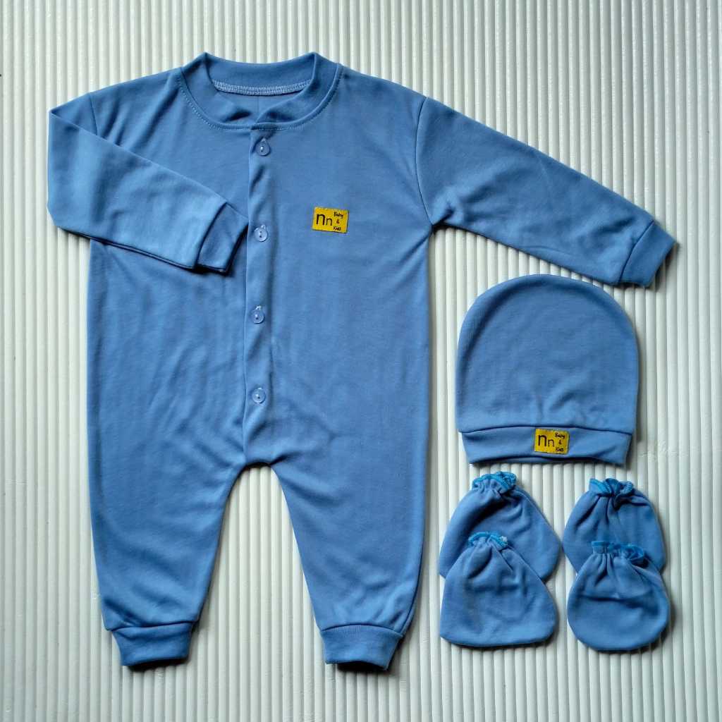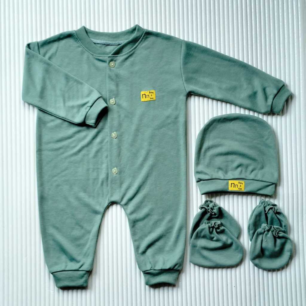 Pakaian Bayi 1 Set Baju Jumpsuit Bayi Baru Lahir Lengan Panjang Kancing Tengah 012 Bulan Topi+Sartaki