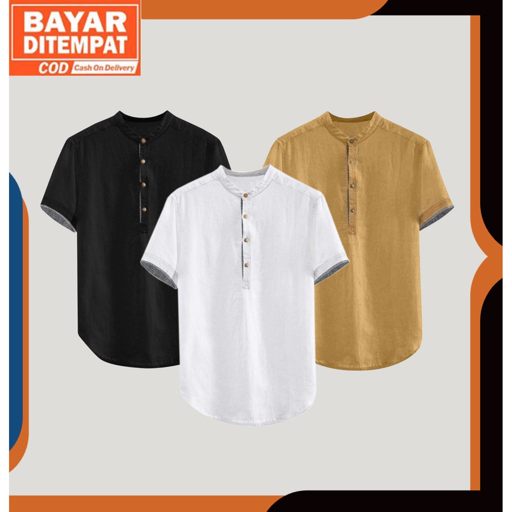 Baju Koko Hanafi Lengan Pendek Kemeja Muslim Pria Premium Nyaman Santai & Formal