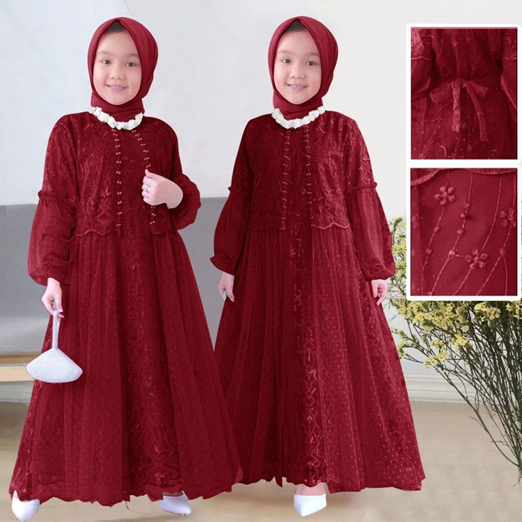 KID RAFIKA 3-16th GAMIS ANAK BRUKAT KELILING TEMBAK MUTIARA GAMIS LEBARAN DRESS ANAK