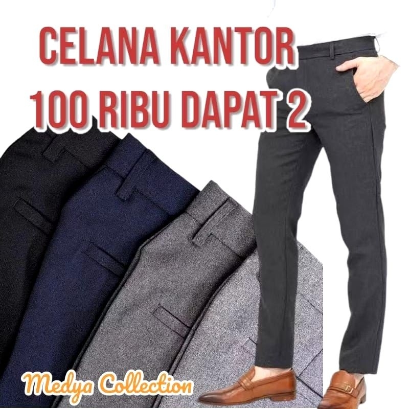 100RIBU DAPAT 2 PCS Celana Panjang Kantor Celana Formal Pria Model Slimfit