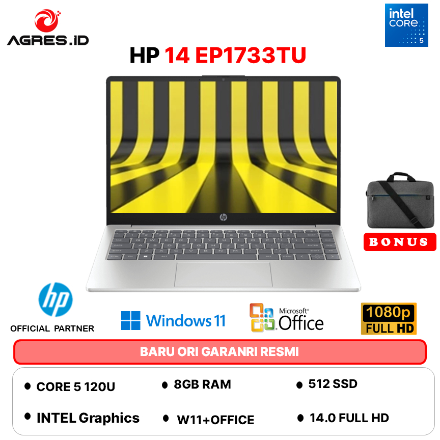 HP 14 CORE 5 120U RAM 8GB 512GB W11+OHS+M365B 14.0FHD COPILOT -EP1733TU -EP1177TU