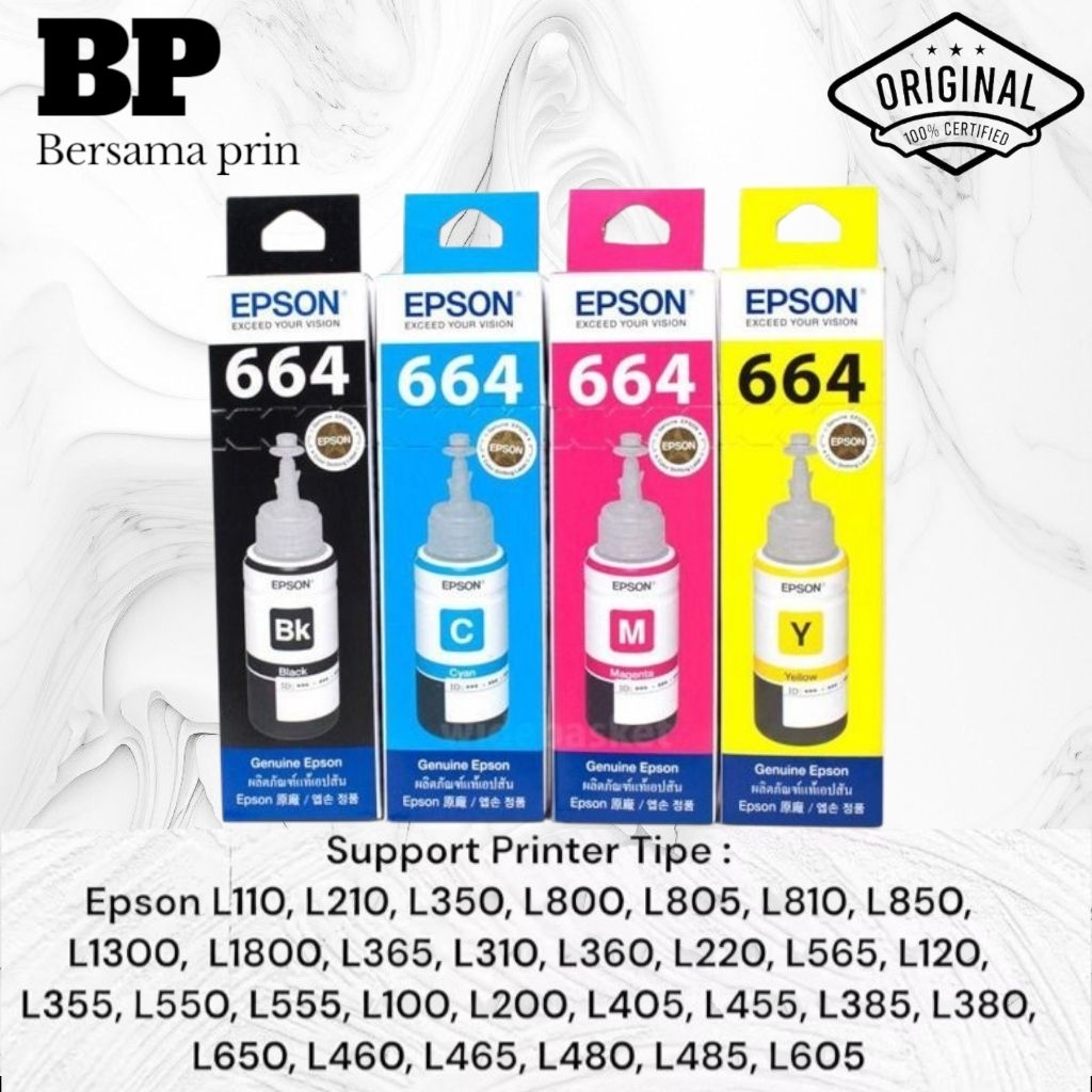 1SET TINTA EPSON 664 BLACK+COLOR ORIGINAL FOR PRINTER L100, L110, L120, L200, L210, L220, L300, L310, L350, L355, L360