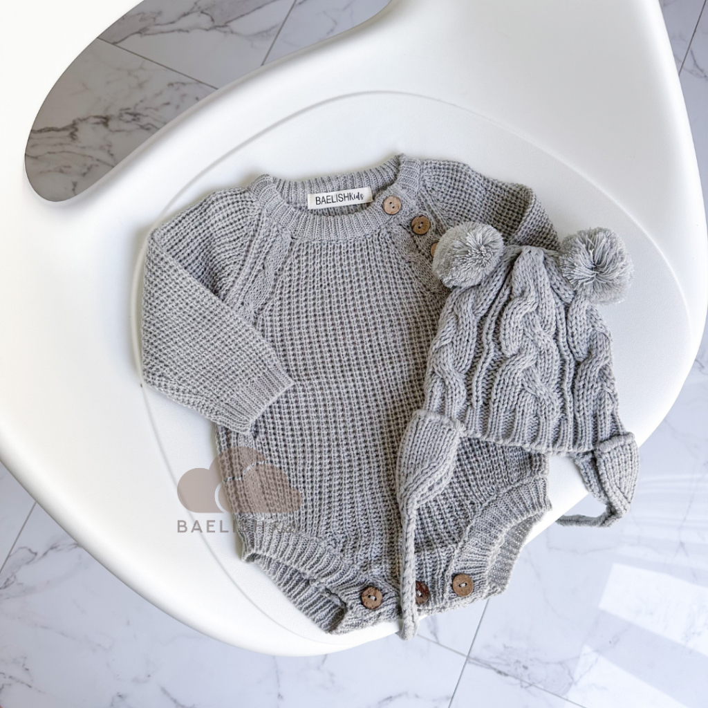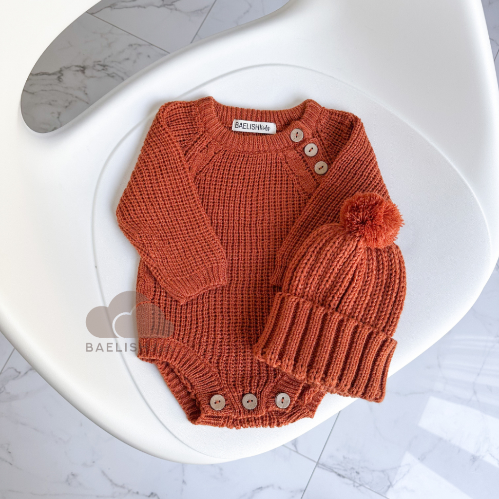 Baju Bayi Lengkap Baju Set Knit Jumper Dan Kupluk Bayi Topi Rajut Beanie Hat Bodysuit Romper Baby