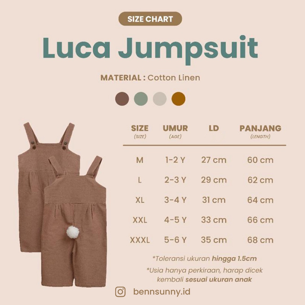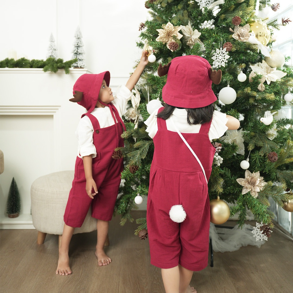 Baju Setelan Luca Jumpsuit + Deer Rusa Bucket Hat Anak 1 6 Tahun Unisex Lakilaki Perempuan Cotton Katun Linen
