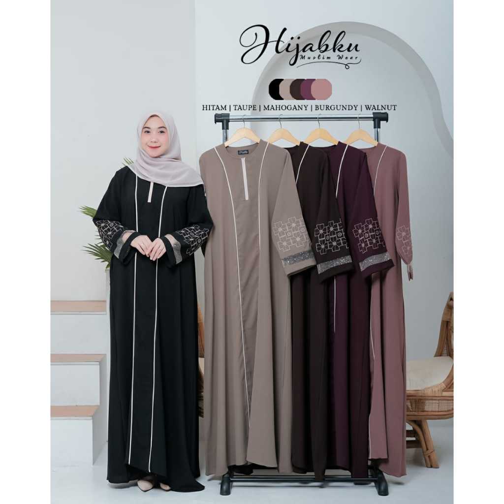 Hijabku Abaya Naima Lengan Bordir Gamis Lebaran Simple Elegant