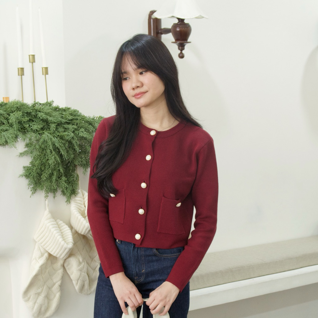 Emily Top Atasan Rajut Wanita Cardingan Cropped Outer Wanita Knit Wear Atasan Panjang Wanita Cardingan Raju