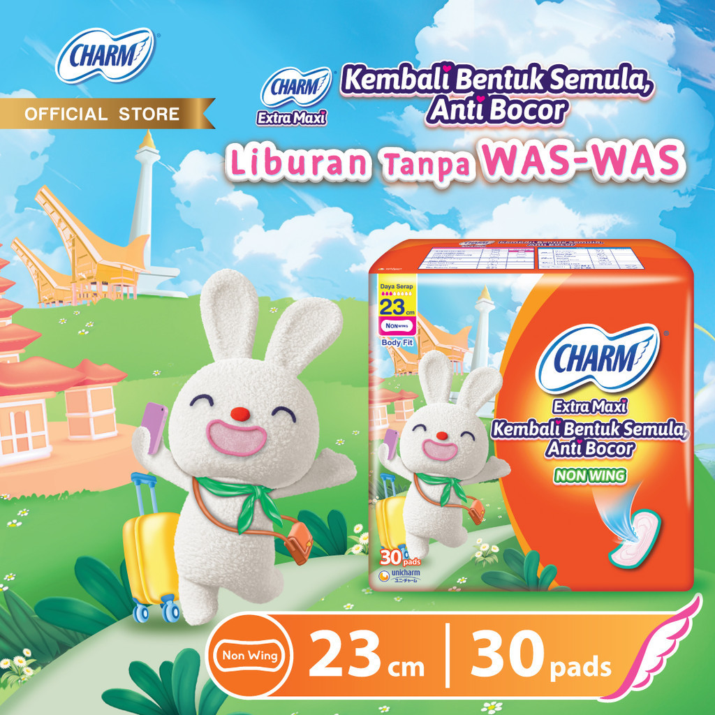 Charm Pembalut Body Fit Extra Maxi 23Cm Non Wing 30 Pads - 3 Packs
