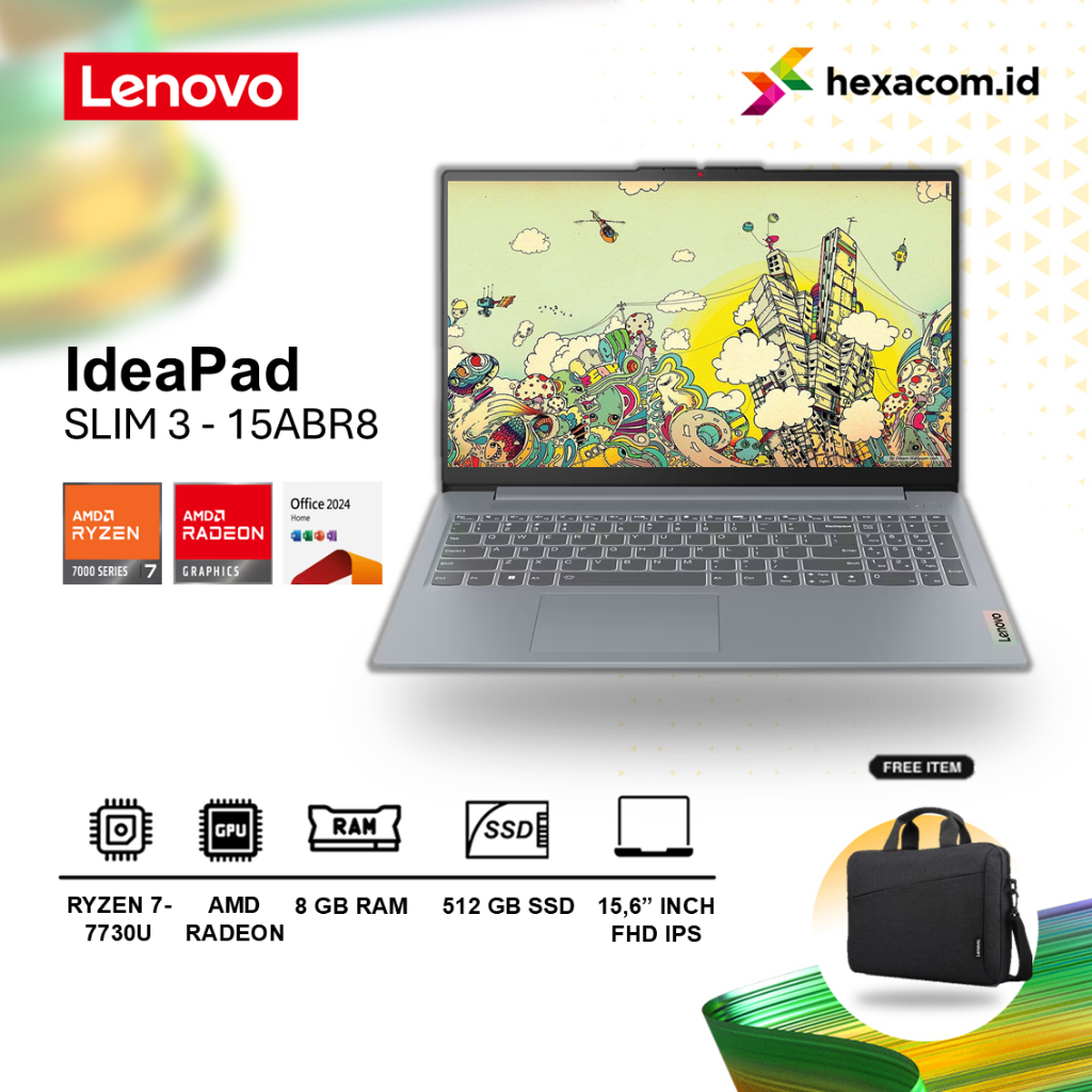 Lenovo Ideapad Slim 3 Ryzen 7 7730U 8GB 512GB SSD 15 Inch FHD IPS