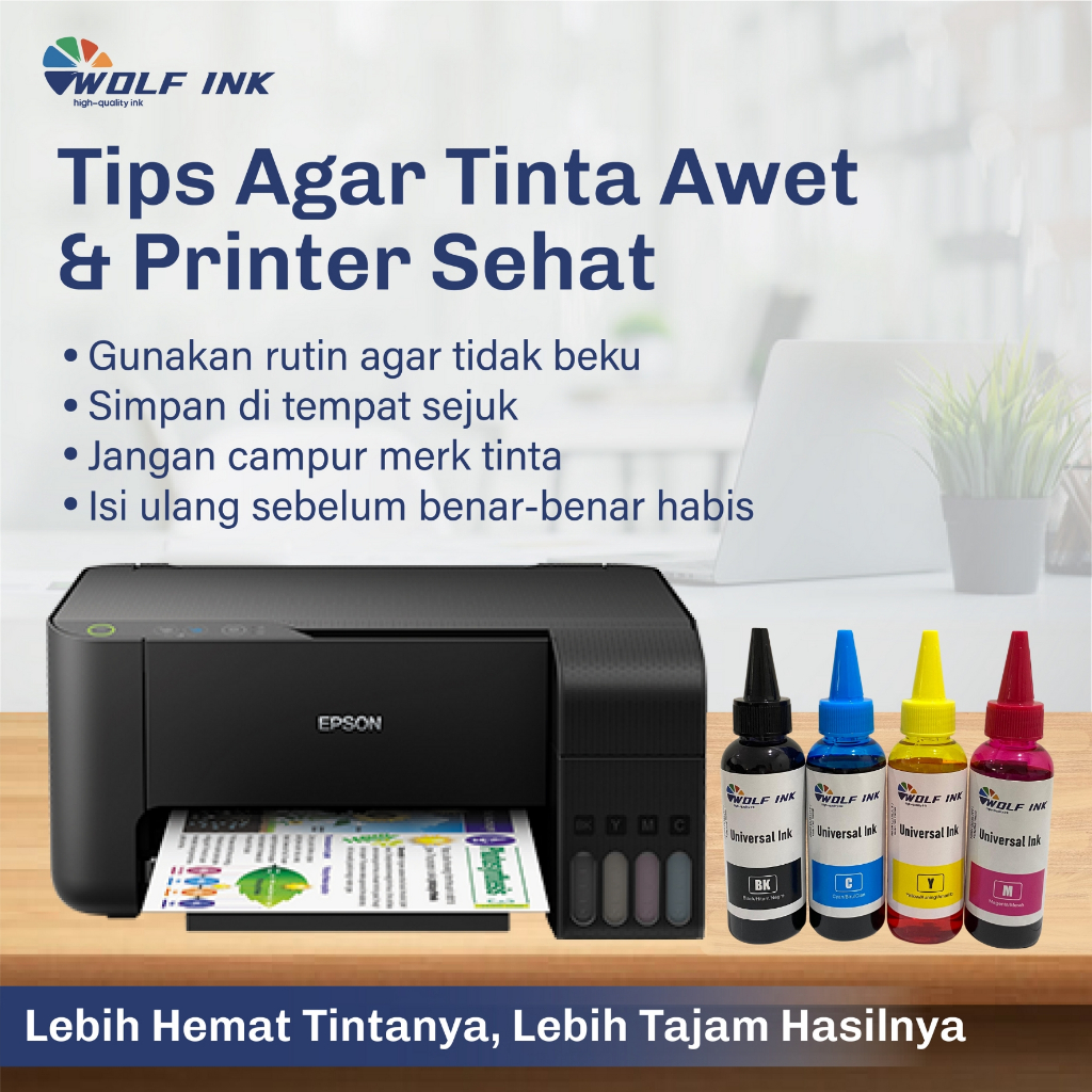 1 Paket Isi 4 Warna Tinta Printer Wolf Ink Universal Satu Tinta untuk Semua Printer Epson Canon Brother HP, Cetak Lancar Dan Gak Pake Drama